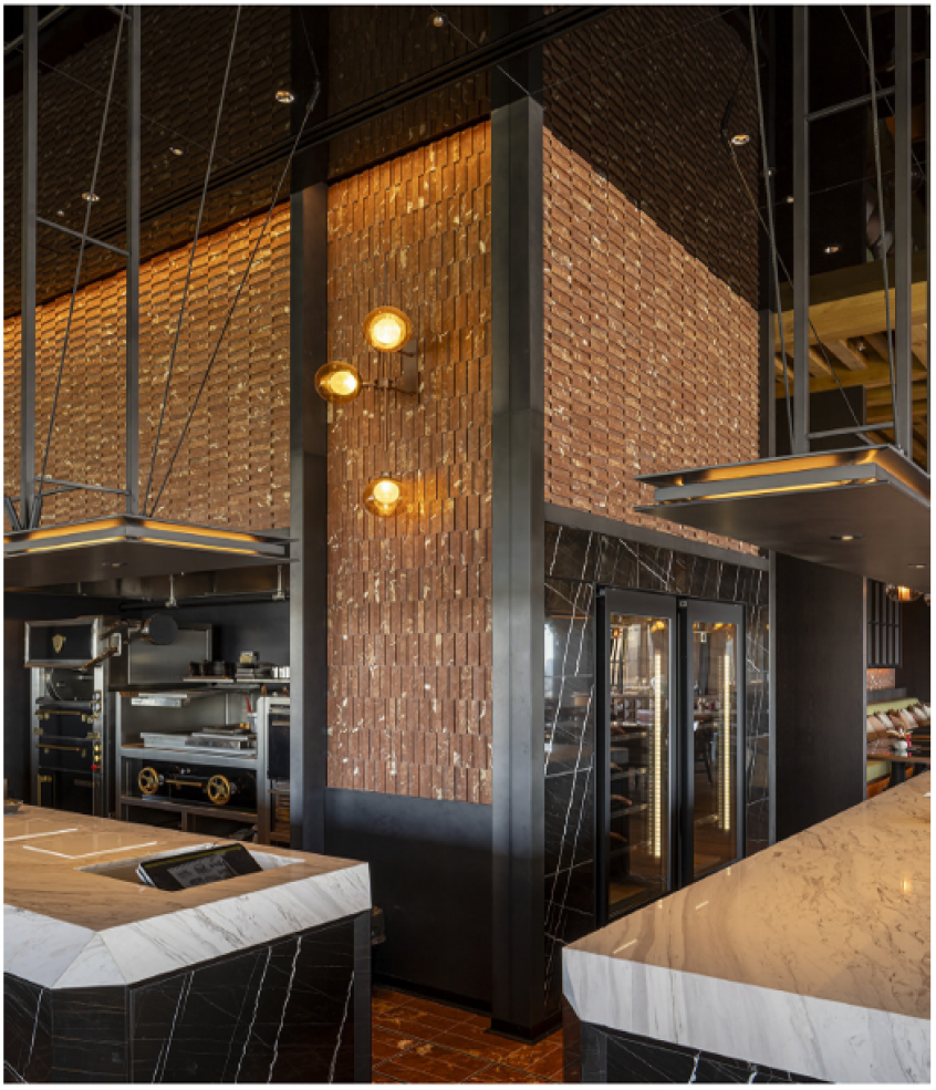 19F 壁:ロッソアリカンテ(アンティーク仕上)/ 腰:サハラノワール(本磨仕上)/ 天板:アヤックス(本磨仕上)